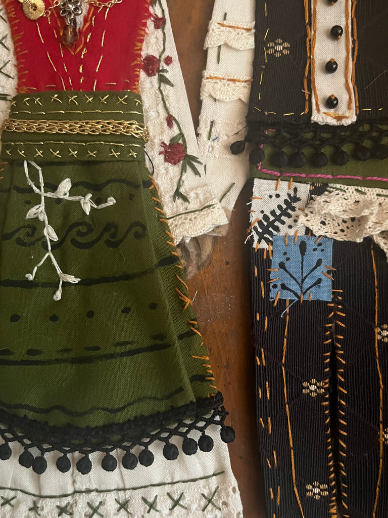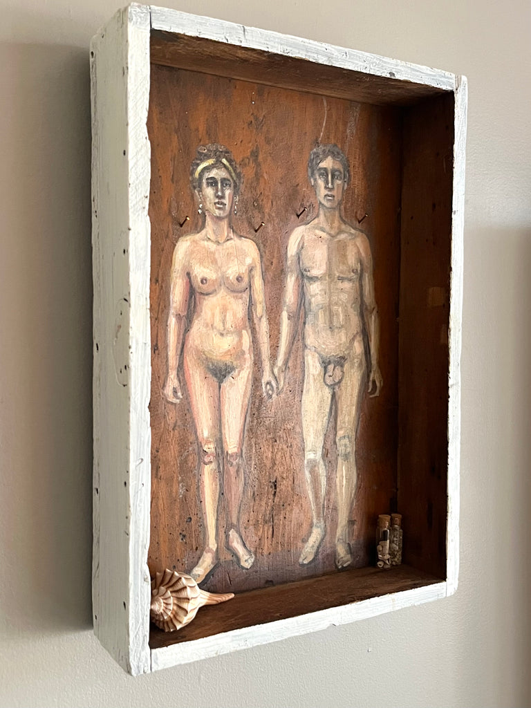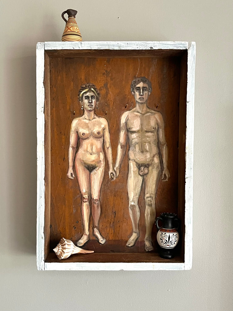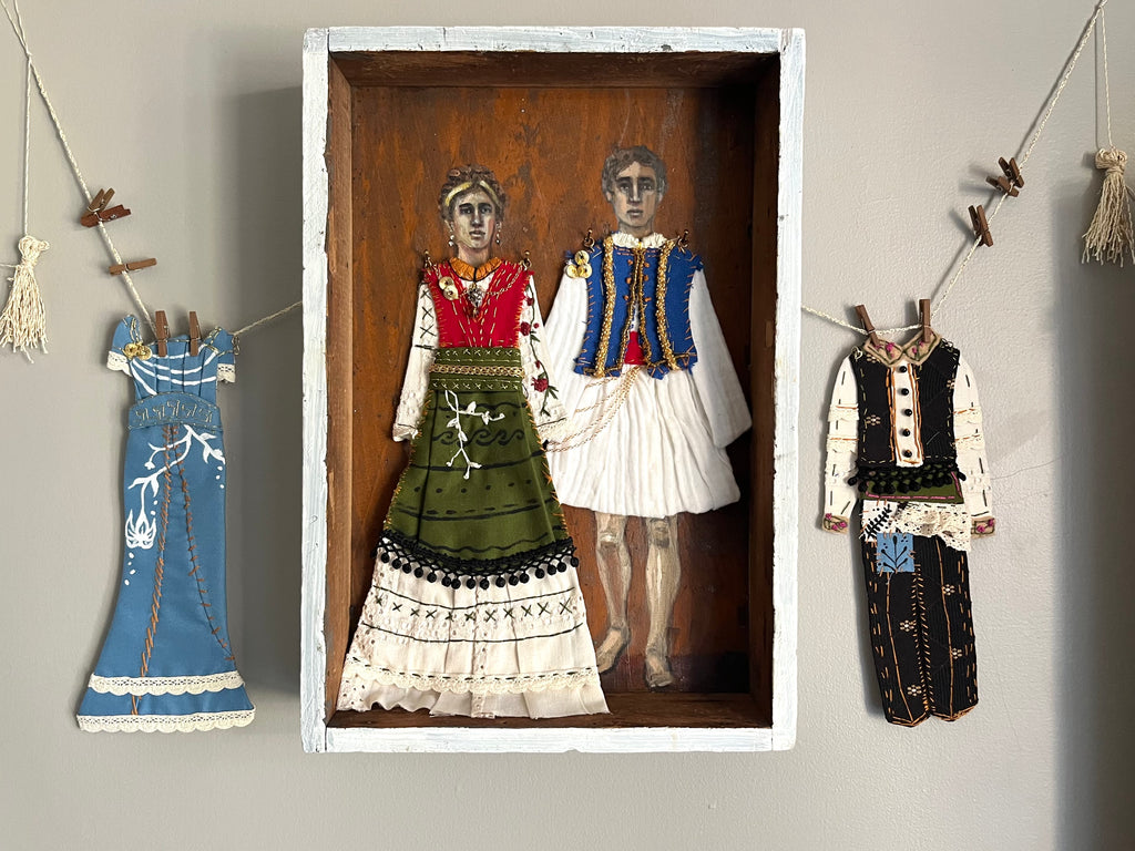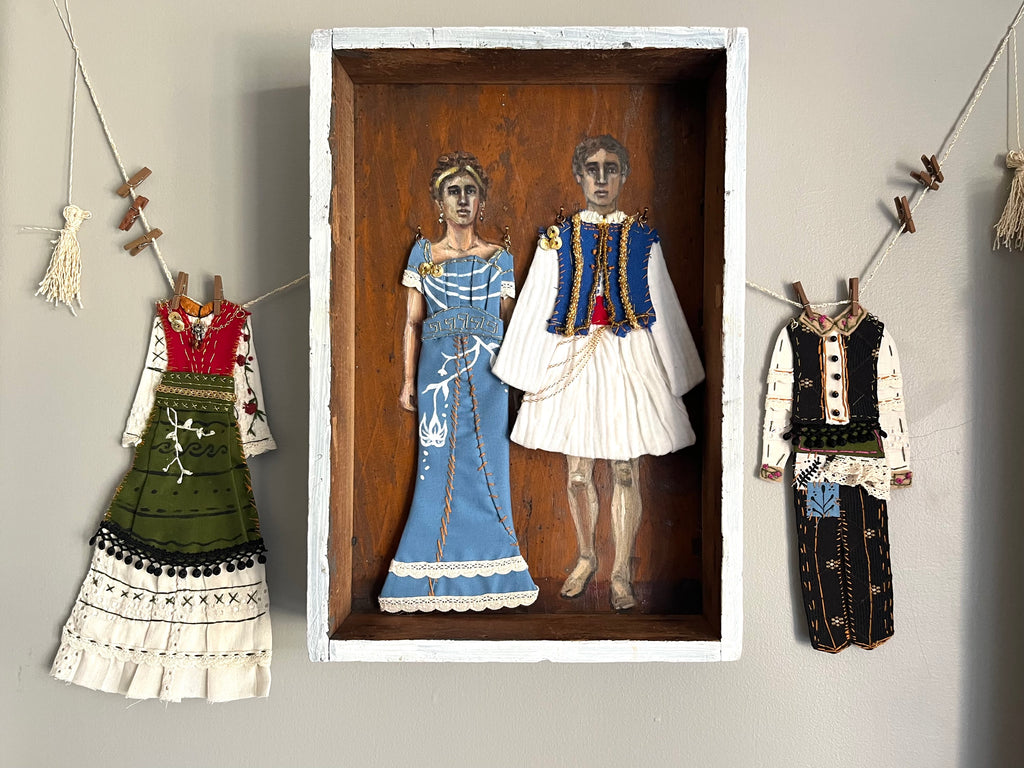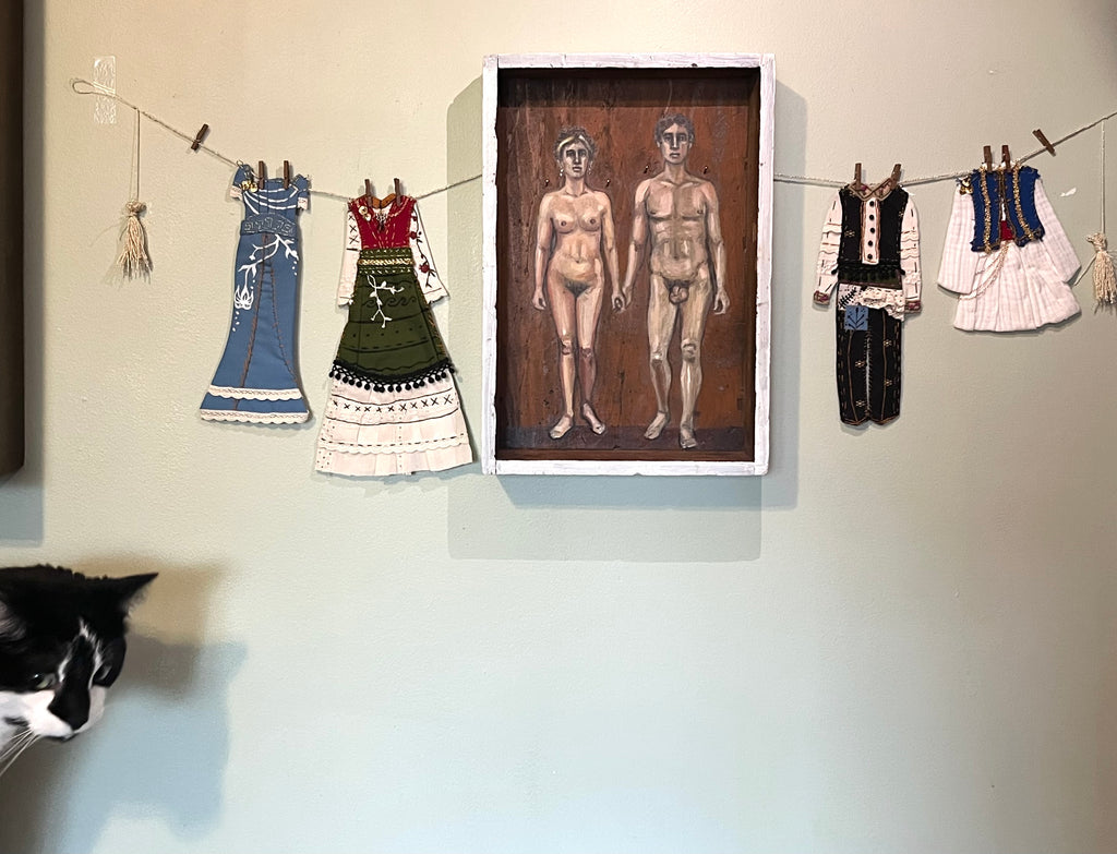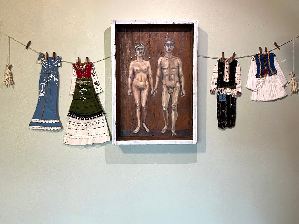 ATHENA AND NIKO by artists Athanasia Nancy Koutsouflakis (painting) and Elisa Cintron (fashion design)