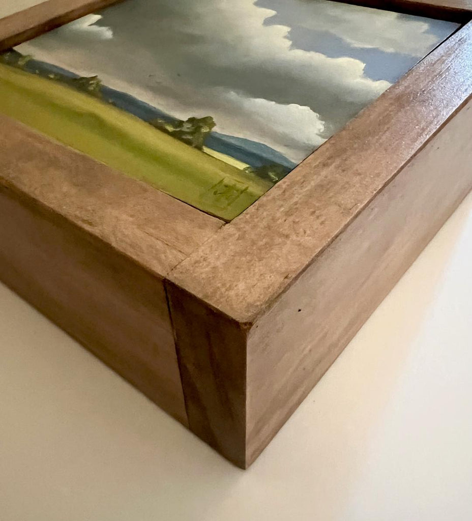 Oil on cradled panel, 5 x 5" framed to 6.75 x 6.75 x 2.5”