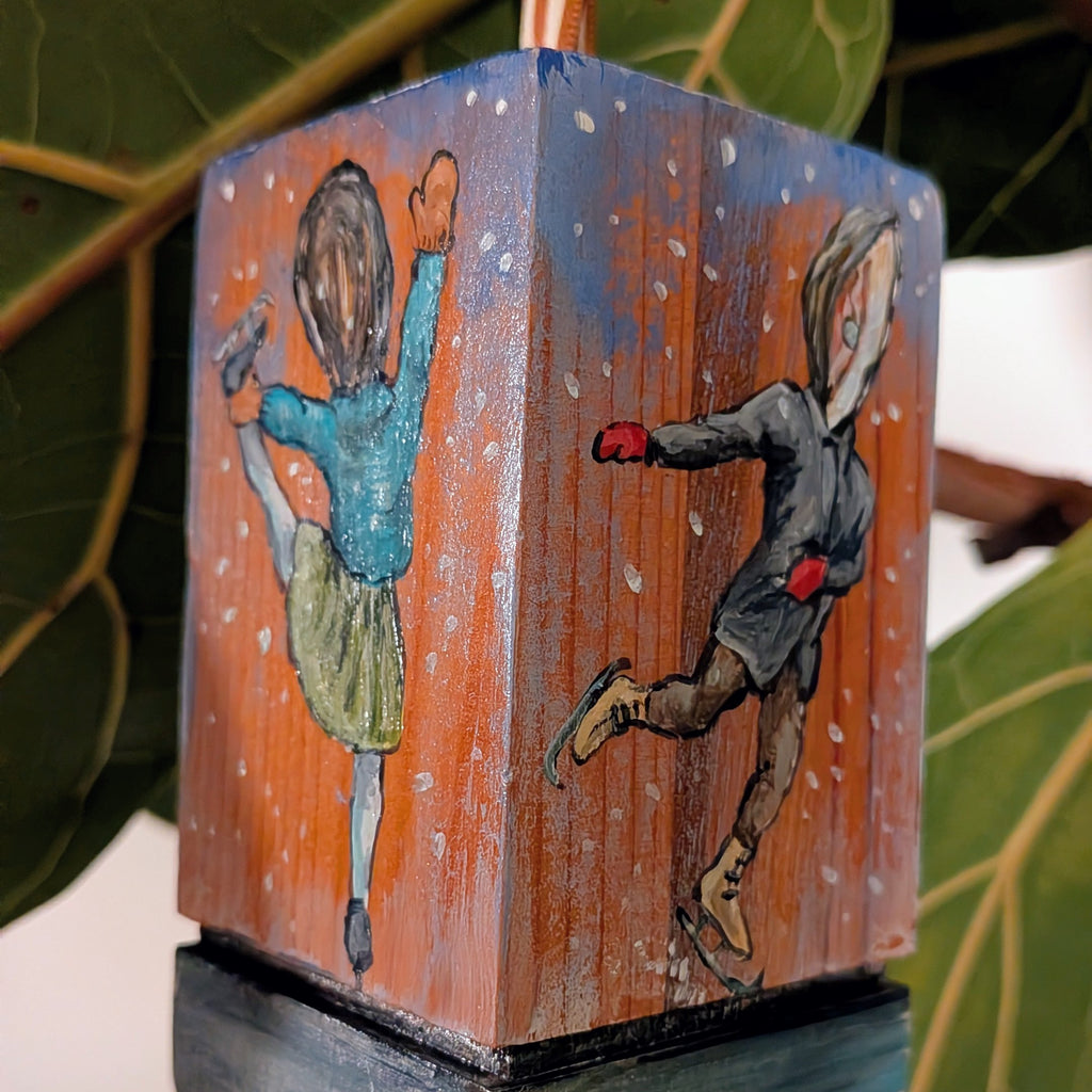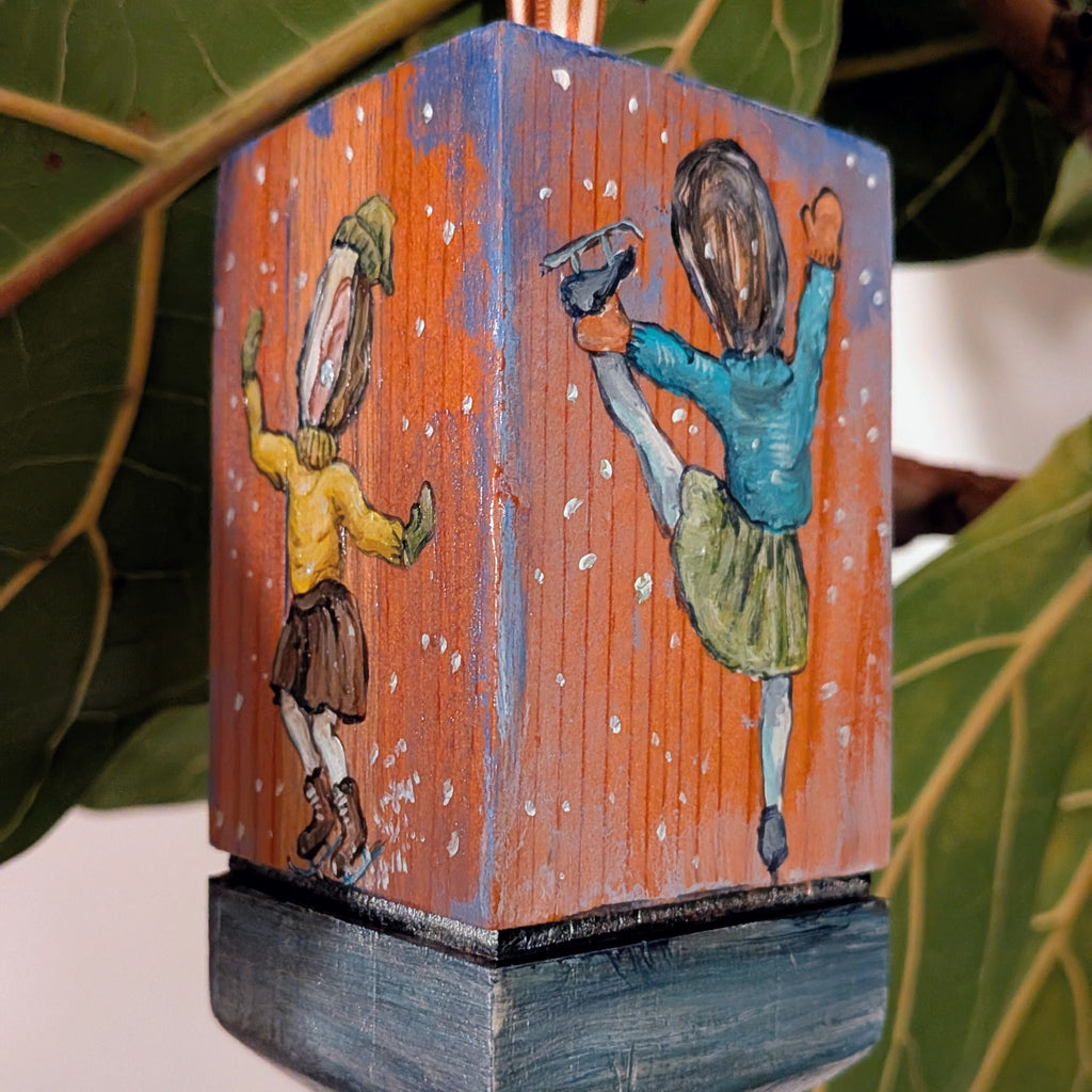 Acrylic on repurpose wood salt and pepper shakers, 4.5" x 2.25" x 2.25"