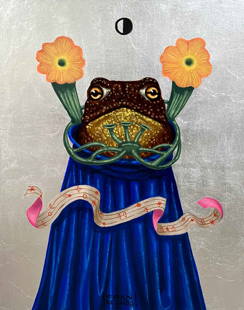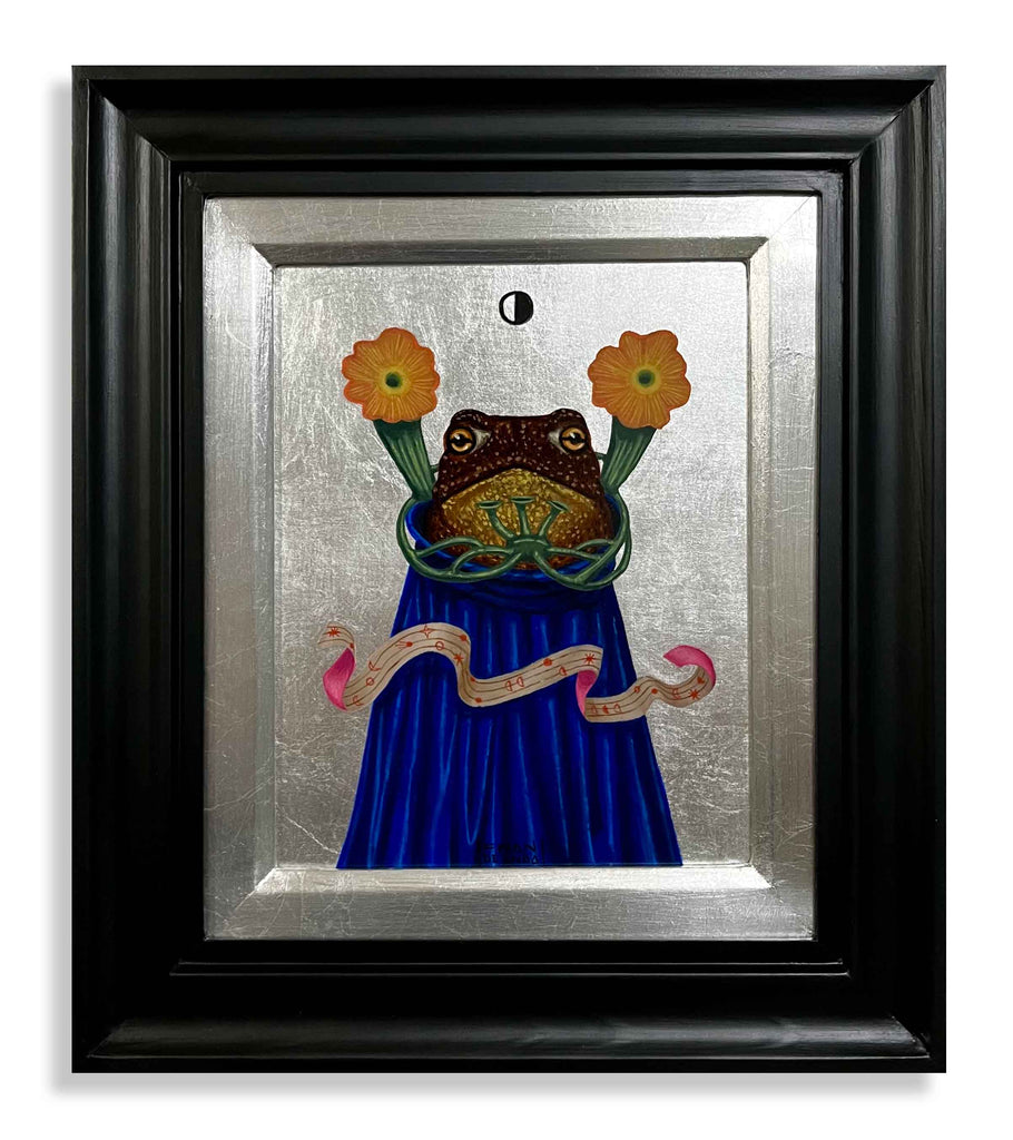 Oil and silver leaf on wood, 8" x 10"